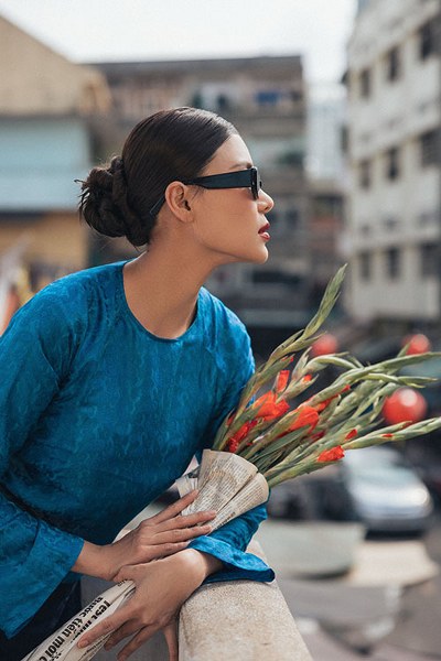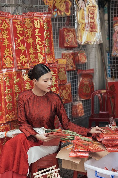 Thúy Diễm diện những chiếc áo dài của NTK Thủy Nguyễn, thực hiện bộ ảnh Tết Sài Gòn xưa. Cô cảm nhận Tết năm nay có phần trầm lắng hơn do người dân vừa trải qua những đợt giãn cách vì đại dịch.