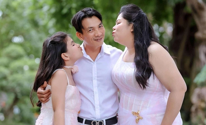 Vợ chồng Tuyền Mập và con gái diện đồ cùng tông