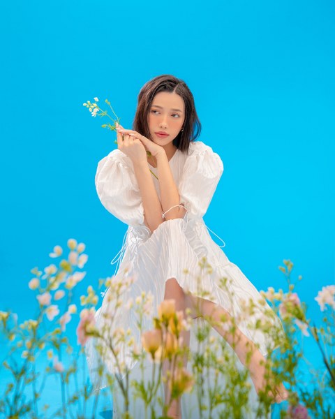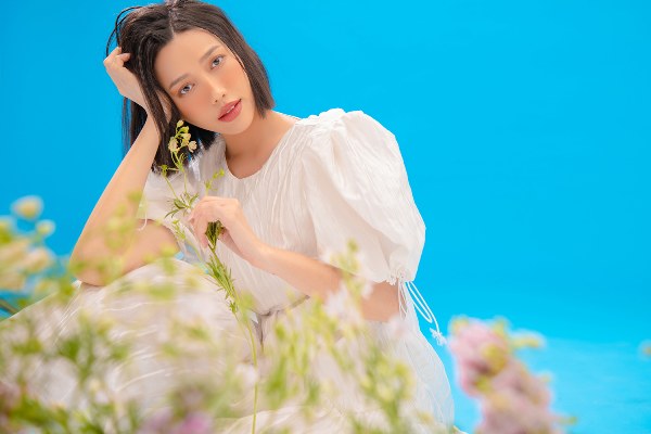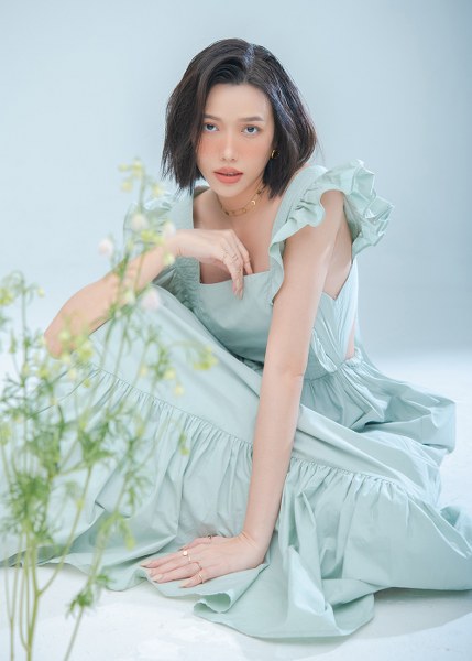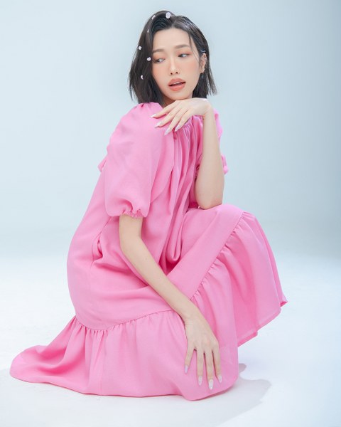 Diễn viên Diệu Nhi khoe vẻ nữ tính với những bộ đầm dáng suông bèo nhún đơn sắc.