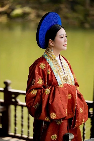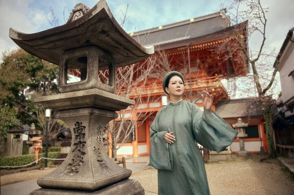 Để toát lên phong thái sang trọng, uy quyền, nữ ca sĩ còn phối trang sức ngọc trai, trâm cài tóc, khăn vấn… cùng trang phục.
