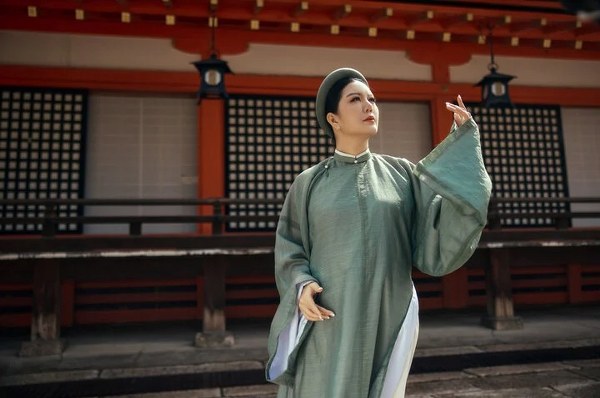 Trong dịp sang Nhật công tác, Đinh Hiền Anh mặc áo dài cổ điển của những thập niên cũ chụp hình tại một số địa danh nổi tiếng của Kyoto với mong muốn lan tỏa vẻ đẹp của trang phục Việt Nam đến bạn bè quốc tế. Khi dạo bước ở đây, không ít du khách đã ngắm nhìn và khen ngợi bộ trang phục nữ ca sĩ khoác lên người. Bộ áo dài mang đậm nét cổ xưa có phần thân dài quá đầu gối với tay áo rộng được mặc cùng quần dài trắng và khăn vấn.