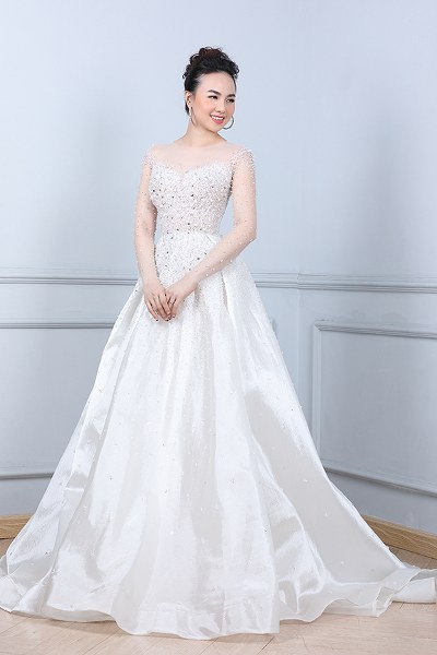 Diễn viên Đinh Ngọc Diệp làm mẫu cho các thiết kế của Hoàng Hải, hưởng ứng dự án từ thiện do anh khởi xướng.