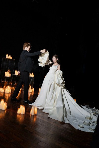 Chuẩn bị lên xe hoa, Đình Tú - Ngọc Huyền đã thực hiện bộ ảnh cưới tại Nhà hát Kịch Hà Nội, nhận nhiều lời khen từ khán giả.