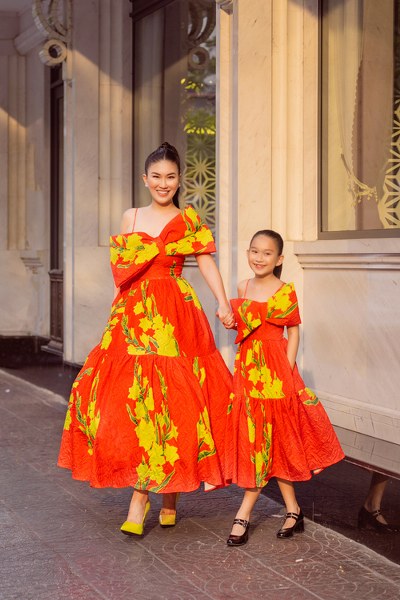 Vũ Ngọc và Son gợi ý chọn đồ ngày Tết cho mẹ và bé với những sắc màu tươi sáng, phom dáng đa dạng.
