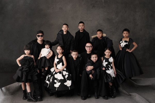 Nhà thiết kế Đỗ Mạnh Cường và 10 con chụp ảnh kỷ niệm nhân dịp đầu năm Ất Tỵ 2025.