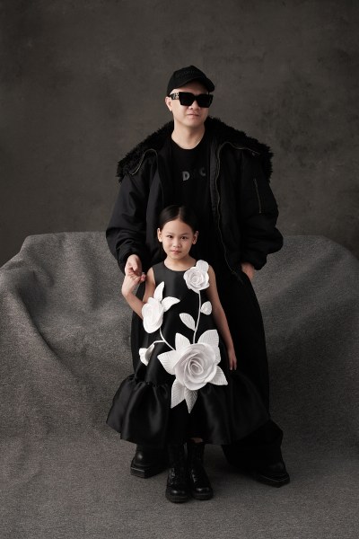 Các bé trai diện đồ cơ bản, tối giản giống bố, bé gái diện các bộ váy hoa 3D được bố làm lại từ bản gốc được yêu thích trong bộ sưu tập dành cho người lớn.