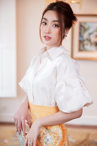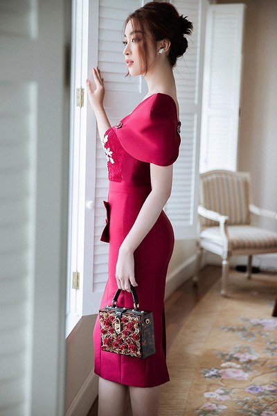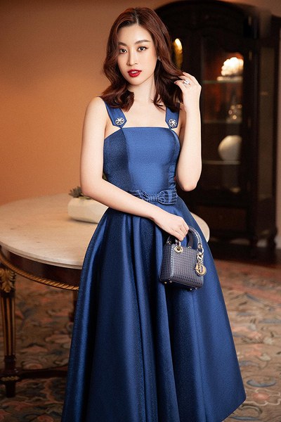 Xuất hiện trong bộ ảnh mới, Đỗ Mỹ Linh khoe dáng cuốn hút nhờ các mẫu đầm đi tiệc tôn vẻ đẹp hình thể và trang trí hoa thêu đậm chất nữ tính.