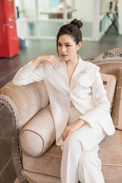 Với vai trò doanh nhân, Đỗ Thị Hà vừa xinh đẹp, sắc sảo lại vừa trẻ trung và gợi cảm khi khoác lên mình bộ vest trắng thanh lịch.