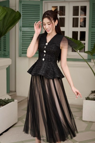 Vẻ đẹp ngọt ngào, trang nhã của Đỗ Thị Hà và Thanh Thủy được khoe trọn qua những mẫu trang phục tweed đa phong cách, ứng dụng được trong nhiều hoàn cảnh từ đi làm, dạo phố đến đi tiệc, gặp mặt hay chúc tụng đầu xuân. Chất liệu chiffon và organza được nhà thiết kế đan xen trên những mẫu sơ mi nơ cổ, đầm xòe bồng, chân váy chữ A để tạo nên sự mềm mại, nữ tính. Với nhiều trang phục, Đỗ Hà và Thanh Thủy khoe được vóc dáng mảnh mai, đôi chân dài hơn một mét.