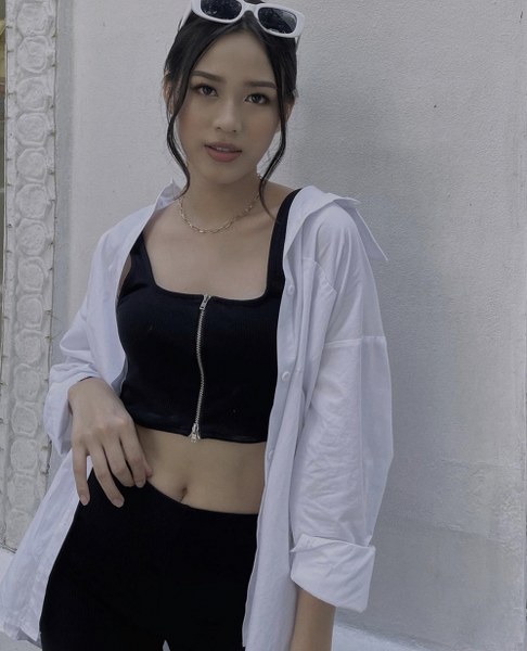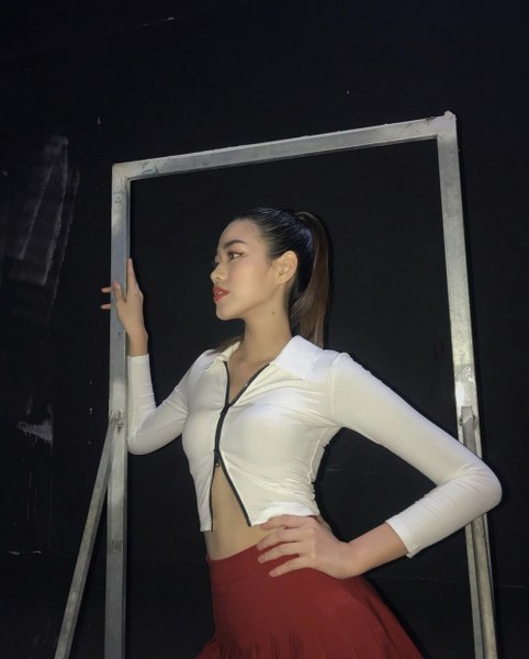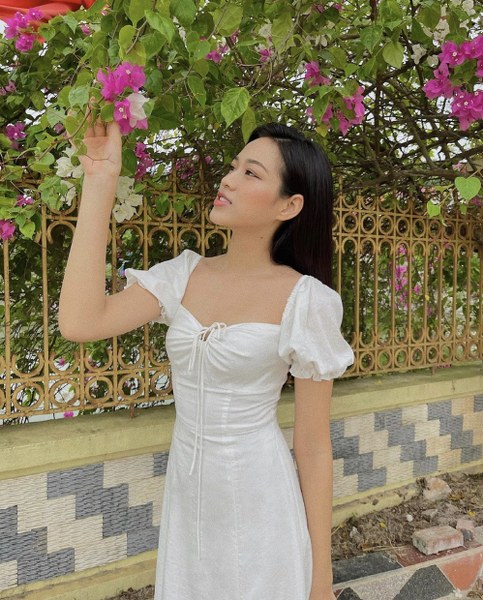 Hoa hậu Đỗ Thị Hà tận dụng áo hở eo, váy liền thân để tôn vóc dáng mảnh mai.