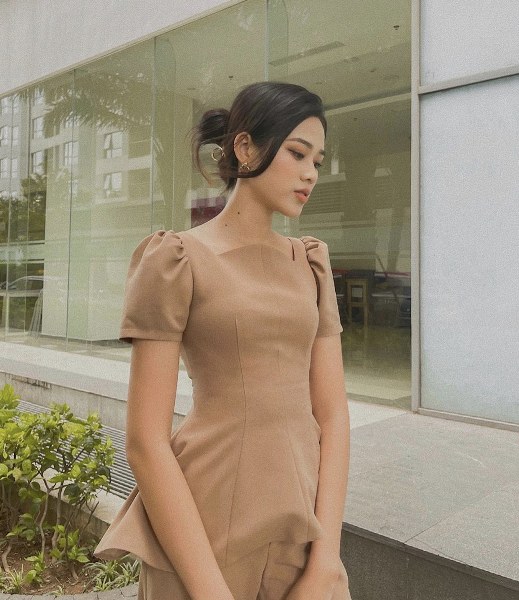 Đầm liền thân mang phong cách cổ điển với chi tiết ôm chặt eo thon cũng được Đỗ Thị Hà tận dụng để tôn nét mảnh mai.