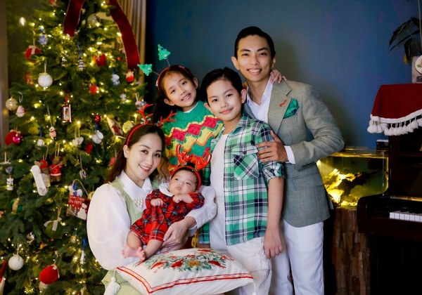 Năm nay, bộ ảnh Giáng sinh có thêm thành viên mới, đó là bé Lisa - con út của cặp vợ chồng. Phan Hiển đùa gia đình anh mỗi lần chụp hình đều mất rất nhiều thời gian trong việc chuẩn bị quần áo cho mỗi thành viên.