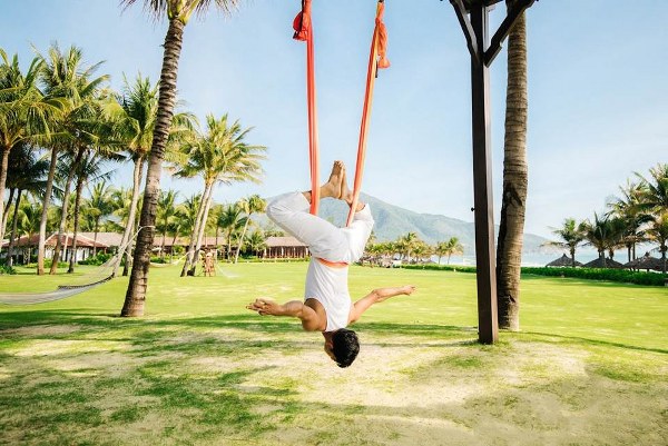 Các lớp học aerial yoga của The Anam Cam Ranh với huấn luyện viên yoga thường trú Umesh Sharma không những giúp giảm cân, tăng nội lực, giảm đau lưng, giải tỏa căng thẳng, tái tạo nguồn năng lượng mà còn mang lại cho du khách cảm giác “bay bổng” giữa không gian Bãi Dài bao la.
