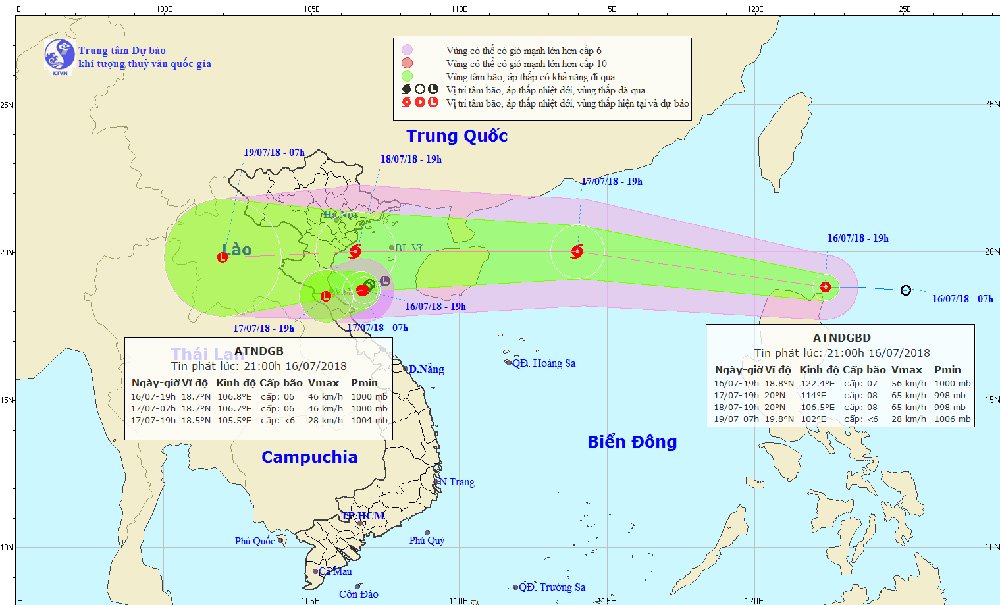 Đến 19h tối nay, vị trí tâm bão ở khoảng 20,0 độ Vĩ Bắc; 114,0 độ Kinh Đông, cách đảo Hải Nam khoảng 330km về phía Đông. Sức gió mạnh nhất vùng gần tâm bão mạnh cấp 8 (60-75km/giờ), giật cấp 10. Phạm vi gió mạnh cấp 6, giật cấp 8 trở lên khoảng 100km tính từ vùng tâm bão.