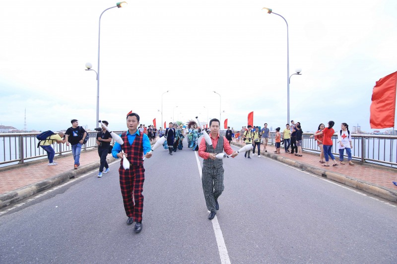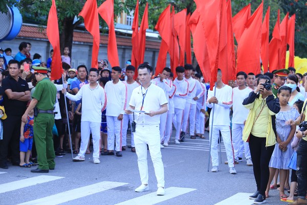 4 đoàn diễu hành xuất phát từ 4 tuyến phố thẳng đến quảng trường Bảo Ninh tạo nên một biển người khổng lồ với những mầu sắc sặc sỡ khiến cho thành phố Đồng Hới gần như "thất thủ".