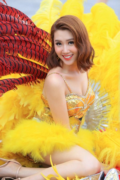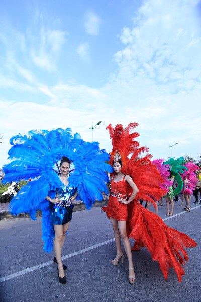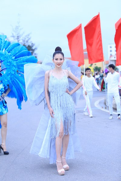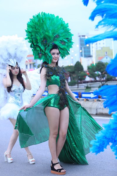 Du khách được chứng kiến hàng trăm cô gái xinh đẹp của Đồng Hới cùng diễu hành trong những bộ đồ bắt mắt, vô cùng quyến rũ.
