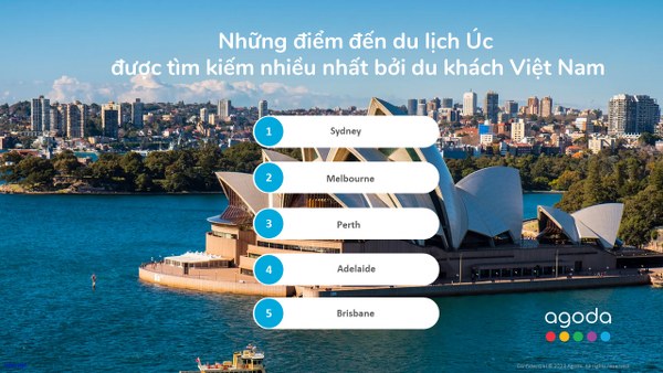 Về phía Việt Nam, dữ liệu của Agoda ghi nhận số lượt tìm kiếm nơi lưu trú tại Úc của du khách Việt tăng 36% so với năm 2023, tập trung tại các thành phố:
