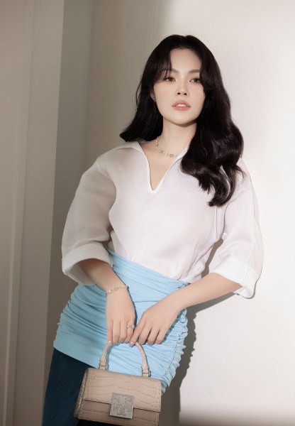 Dương Cẩm Lynh để tóc buông thả tự nhiên với một chút uốn sóng nhẹ khiến cô trông dịu dàng, cuốn hút.