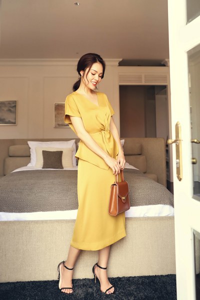 Dương Cẩm Lynh thể hiện phong cách thanh lịch và duyên dáng qua các mẫu váy hợp xu hướng hè, hài hòa với môi trường công sở.
