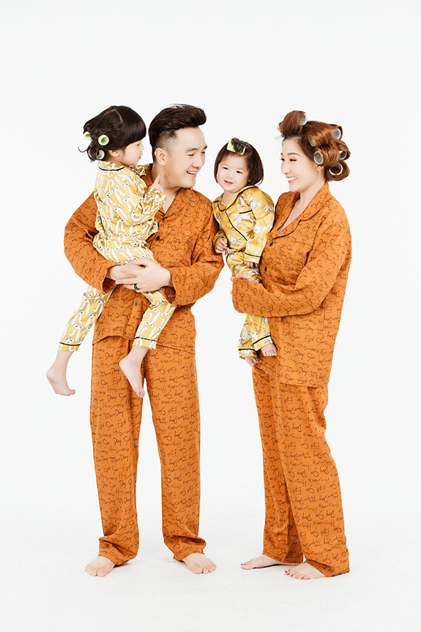 Ca sĩ Dương Ngọc Thái, bà xã và hai con gái mặc trên người trang phục pijama với sắc màu rực rỡ. Trong dịp năm mới, vợ chồng Dương Ngọc Thái cũng muốn gửi lời chúc mừng năm mới an lành đến tất cả mọi người và đặc biệt là những người luôn yêu quý anh.