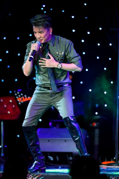 Xuất hiện cùng Dương Triệu Vũ là đàn anh thân thiết Đàm Vĩnh Hưng. Cũng như hình ảnh thường thấy, "ông hoàng nhạc Việt" gây ấn tượng với thời trang đẳng cấp và dát kim cương khắp người. Anh còn gây chú ý khi đeo đồng hồ có giá ước tính gần 2 tỷ đồng.