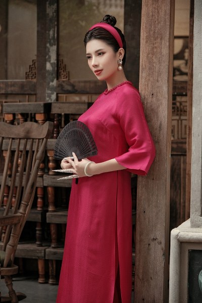 Cô khéo léo kết hợp với các phụ kiện như chuỗi vòng cổ, băng đô, trâm cài tóc, quạt giấy... để mỗi shoot ảnh đều mới mẻ, sinh động. Ngoài cách mặc đồng bộ, 9X còn chọn màu quần nổi bật, qua đó càng giúp chiếc áo dài trở nên thu hút, ấn tượng.