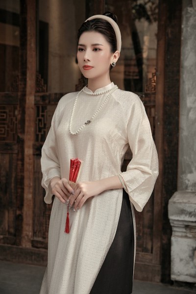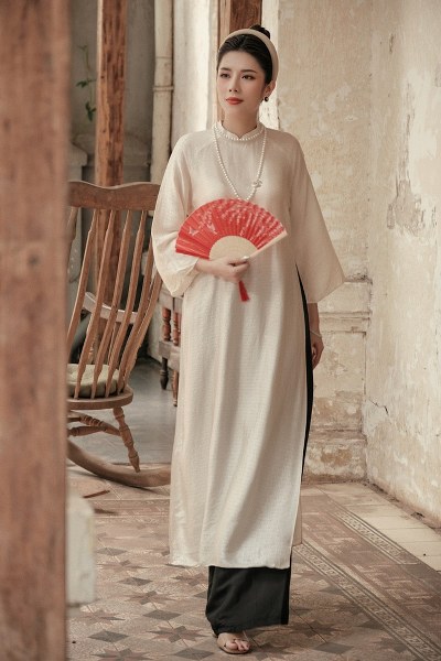 Không chỉ ưa chuộng kiểu áo dài truyền thống tôn đường cong, Dương Yến Nhung còn yêu thích các thiết kế áo dài tay lỡ, dáng suông buông nhẹ theo vóc dáng. Nếu gam màu hồng dâu mang đến hình ảnh đằm thắm dịu dàng thì gam màu trắng lại tô điểm cho vẻ đẹp thanh tân trong trẻo cho nàng hậu 9X.