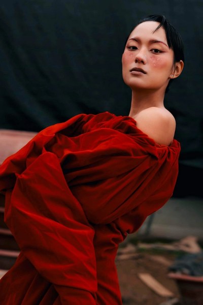 Người mẫu có gương mặt đậm chất Á Đông với đường nét góc cạnh, mắt mí lót, làn da bánh mật.