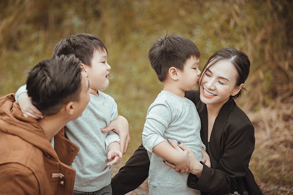 Nhân lúc tiết trời TP HCM se lạnh, gia đình Baggio - Quỳnh Trâm đưa hai con sinh đôi ra ngoài chụp hình.
