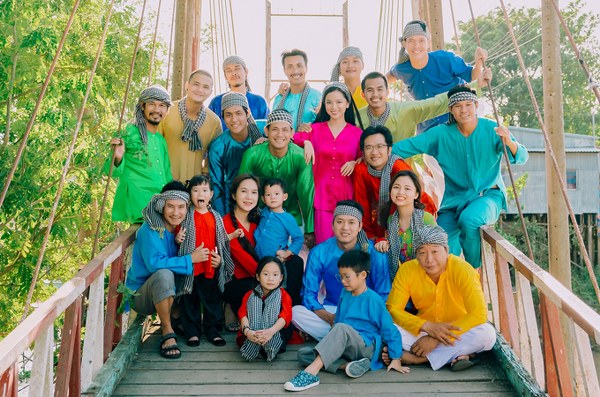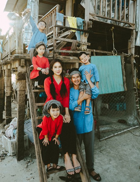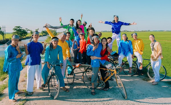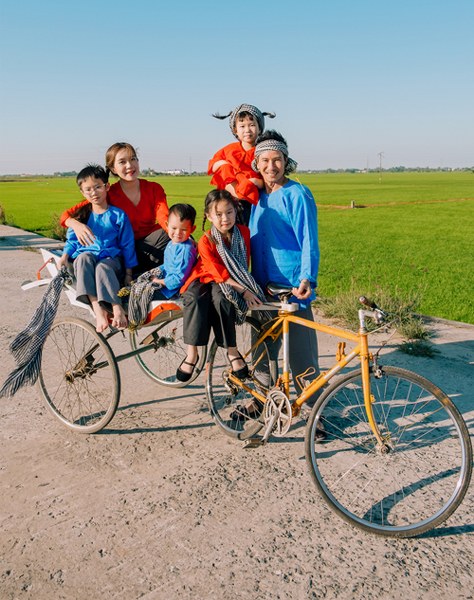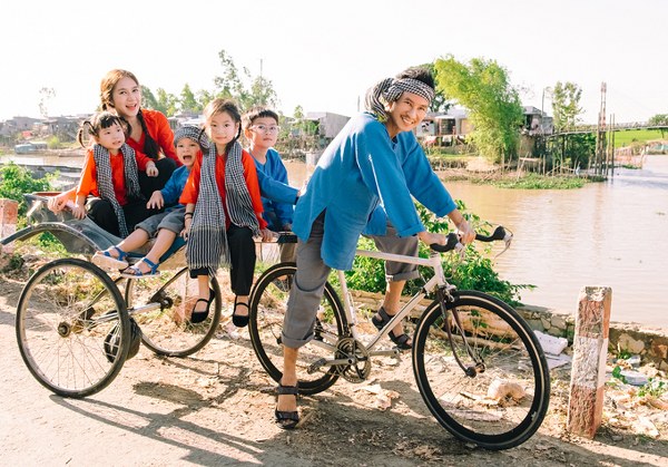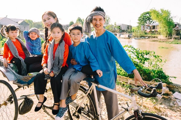 Đạo diễn Lý Hải sắm vai nông dân đưa gia đình đi dạo bằng phương tiện xe lôi rất phổ biến ở miền Tây.