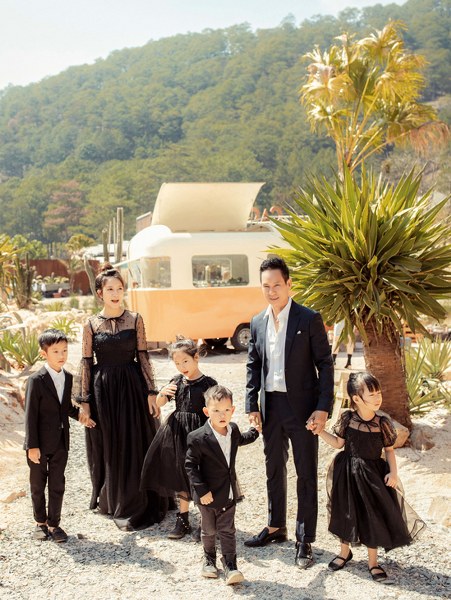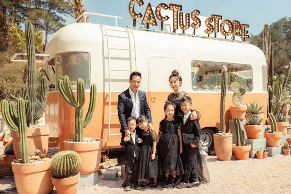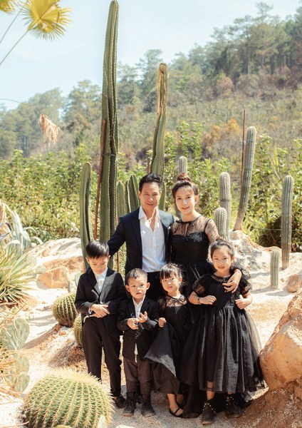 Gia đình Lý Hải mặc ton-sur-ton đen tới thăm vườn xương rồng nổi tiếng ở Đà Lạt, cuối tuần qua.