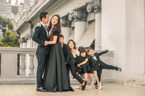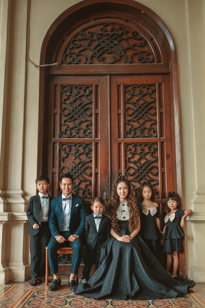 Cặp vợ chồng và 4 con đã ghi lại dấu mốc đặc biệt bằng một bộ ảnh chụp ở bảo tàng thành phố, diện đồ ton-sur-ton.