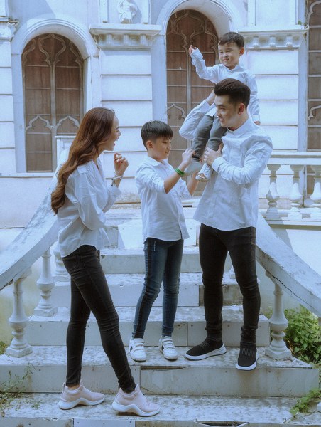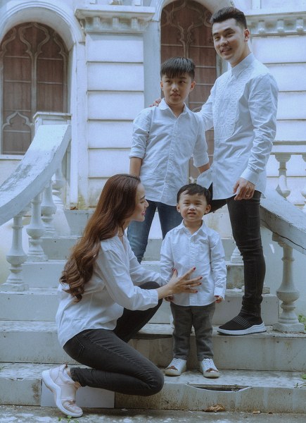 Con riêng của Kim Cương 10 tuổi, rất chững chạc, cao lớn còn con chung của cô và nam ca sĩ bộc lộ năng khiếu ca hát từ nhỏ.