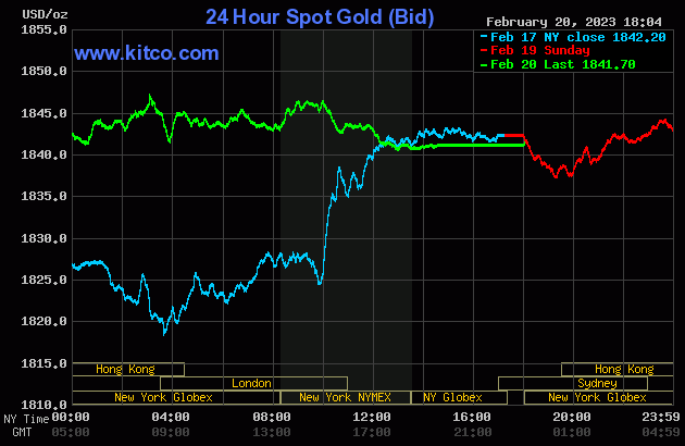 Giá vàng thế giới trên sàn Kitco mở phiên giao dịch ở mức 1841.4 - 1842.4 USD/ounce. Phiên trước, kim loại quý giao động trong mức 1840.3 - 1848.1 USD/ounce.