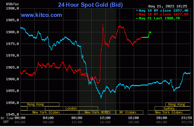 Giá vàng thế giới trên sàn Kitco mở phiên giao dịch đầu tuần ở mức 1977.6 - 1978.6 USD/ounce.