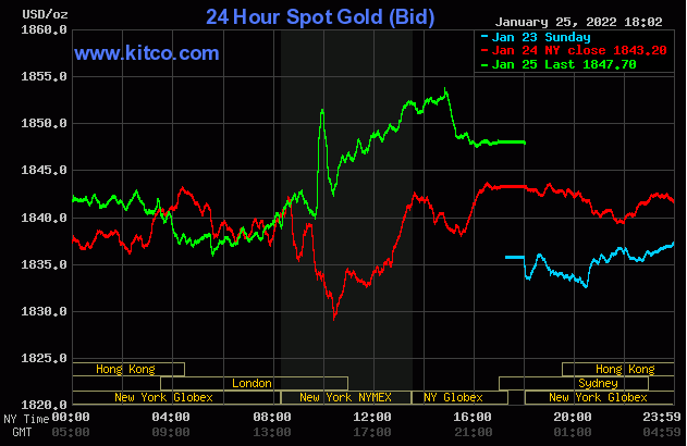 Giá vàng thế giới trên sàn Kitco giao dịch ở mức 1847.8 – 1848.8USD/ounce. Giá vàng tăng cao hơn và đạt mức cao nhất trong hai tháng. Giá vàng kỳ hạn tháng 2 tăng 6,6 USD ở mức 1.848,3 USD/ounce.