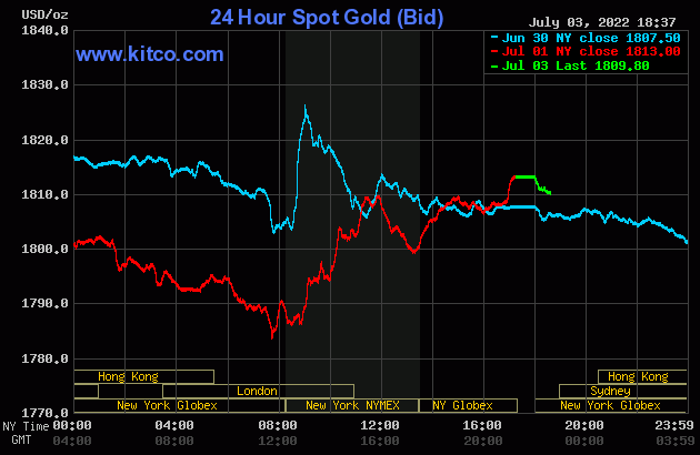 Giá vàng thế giới trên sàn Kitco giao dịch ở mức 1809.9 – 1810.9 USD/ounce, thấp hơn mức giá khi đóng cửa tuần trước khoảng 3 USD/ounce. Phiên cuối tuần trước giá vàng đóng cửa tuần giao dịch ở mức 1.813 USD/ounce, giảm 13 đồng/USD so với tuần liền kề trước đó.