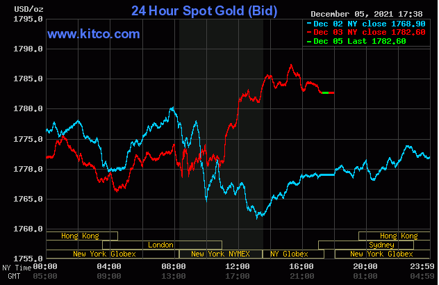 Giá vàng thế giới trên sàn Kitco giao dịch ở mức 1781.3 – 1782.3 USD/ounce.
