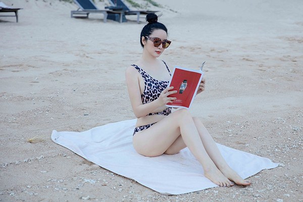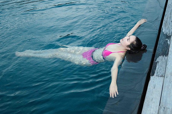 Cô thư thái ngâm mình trong làn nước mát, ngắm mây trời lơ lửng trên đầu. Con gái Giáng My đi nghỉ dưỡng cùng mẹ nhưng không chụp ảnh vì ngại gây chú ý.