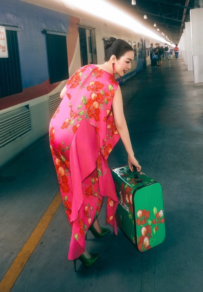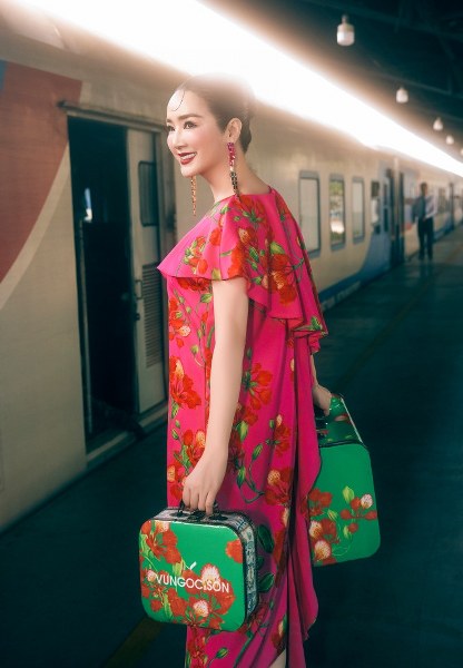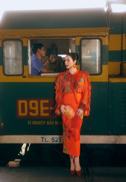 Vốn yêu thích các thiết kế của Vũ Ngọc và Son, hoa hậu Giáng My vừa thực hiện bộ ảnh với bộ sưu tập mới Thanh xuân tại ga Sài Gòn.