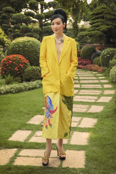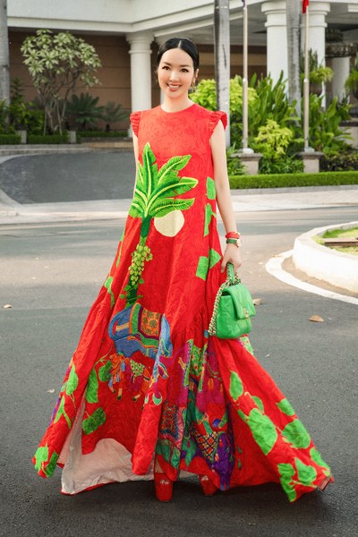 Giáng My mua 8 mẫu váy mới để ủng hộ hai nhà thiết kế Vũ Ngọc và Son trong dịp khai trương đầu năm mới.