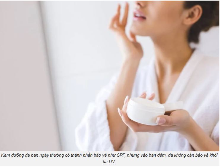 Kem dưỡng da ban ngày thường có thành phần bảo vệ như SPF, nhưng vào ban đêm, da không cần bảo vệ khỏi tia UV.