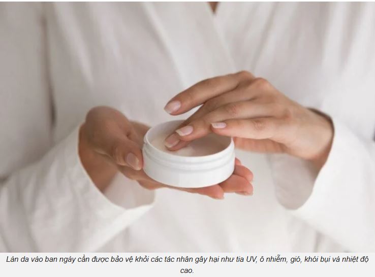 Làn da vào ban ngày cần được bảo vệ khỏi các tác nhân gây hại như tia UV, ô nhiễm, gió, khói bụi và nhiệt độ cao.