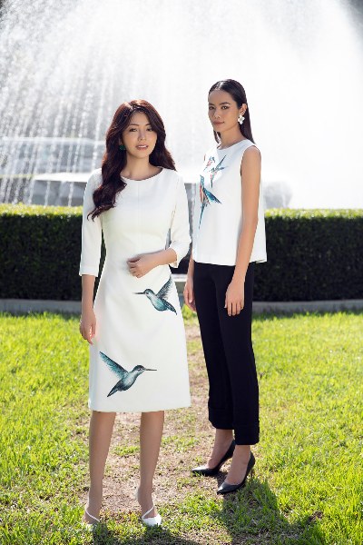 Tự tin trong sắc trắng tinh khôi nhưng không kém phần sang trọng, quý cô có thể chọn cho mình chiếc đầm A tay lửng hoặc áo trắng rời phối quần Âu thiết kế từ chất liệu lụa satin ánh nhung. Họa tiết chim vẽ tay càng làm tôn lên nét tinh tế, đặc biệt của trang phục.