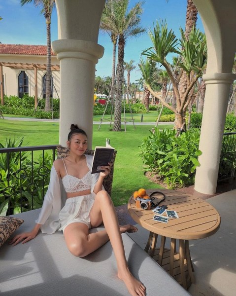 Những bộ đồ ngủ bằng ren và satin cao cấp cũng được người đẹp áp dụng để tạo sự thư giãn khi đi nghỉ.