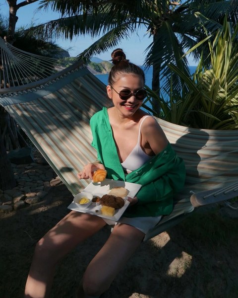 Thanh Hằng có lúc diện đồ nam tính, khi lại gợi cảm với váy lưới trong các kỳ nghỉ.