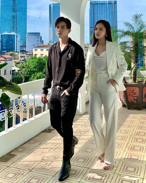 Trong những phân cảnh đóng cùng Nhan Phúc Vinh, Diễm My thường chọn trang phục ăn ý về màu sắc, kiểu dáng để cả hai trông đẹp đôi hơn.