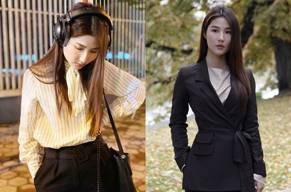 Khi diện đồ công sở, Khả Ngân thường chọn các gam màu trung tính. Cô không cầu kỳ trong trang sức, phụ kiện mà chỉ đeo bông tai, kẹp tóc để tổng thể sang trọng hơn.