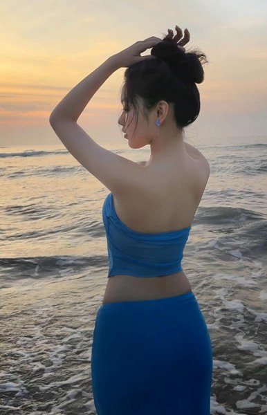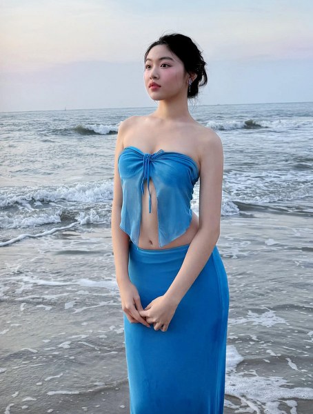 Con gái Quyền Linh, Lọ Lem, 18 tuổi, chọn đầm hai dây, váy cạp trễ, crop-top, khi đi nghỉ dưỡng ở vùng biển.