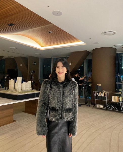 Xen kẽ với những bộ trang phục có gam màu tươi sáng, Lim Ji Yeon vẫn rất ăn điểm với phong cách sang trọng và cuốn hút. Chiếc áo khoác lông làm bật lên sự cá tính cùng chân váy da, phối cùng túi và khuyên tai càng khiến vẻ ngoài của cô nàng được thăng hạng.